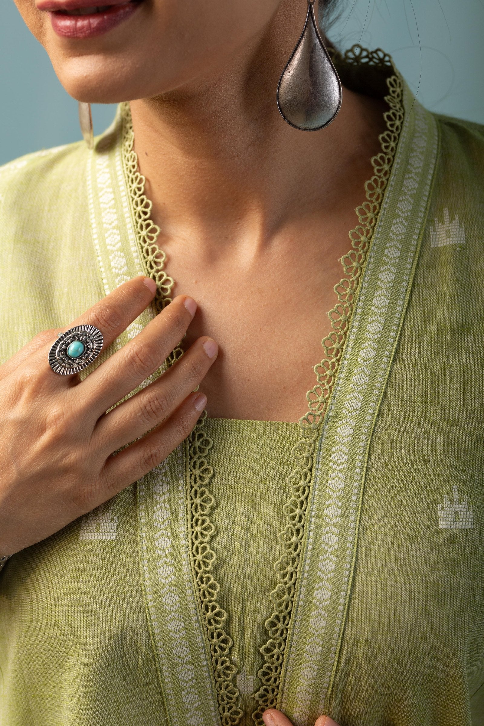 Pista Handloom Cotton Kurta Set Pista Handloom Cotton Kurta Set